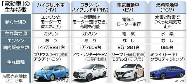 以下は2019年の情報ですが、単なる電動車よりもHV車(ハイブリッドカー)の方が販売量が多いようです。