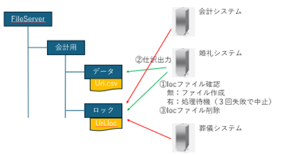 会計システムはクレオ社のZeemになります。オンプレサーバで導入したため、ファイルサーバによるフォルダ共有で各種システムからのデータ受渡しが可能となりました。複数のシステムからCSVファイルの入出力が必要となるため、システムからCSVファイルを出力する前にロックファイルを作成する事で同時にCSCファイルを書き込みしないように制御する方法をとりました。