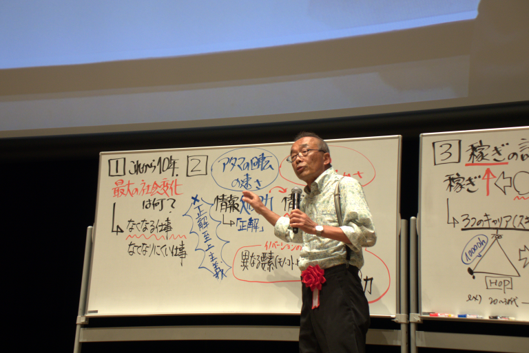 柔軟な発想と「変革と成長を促す思考法」を身につけるためのヒントについて、ユニークなご講演をいただきました。「アクティブラーニング」形式による参加型ブレインストーミングが会場一体となって行われ、AI時代に求められる力として、単なる情報処理に留まらない「情報の編集力」の重要性が強調されました。参加者一人ひとりが課題を実感し、思考を深めるアクティブな時間となりました。